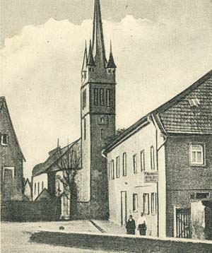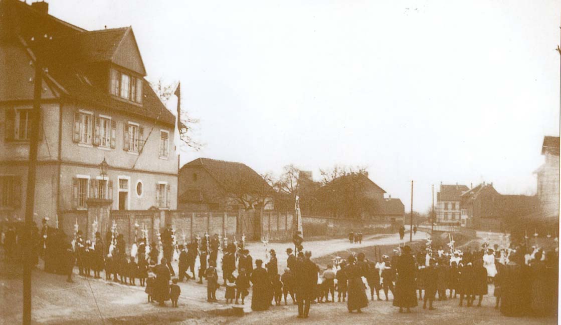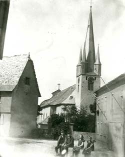 1900 heben sich Pfarrkirche und das neu erbaute Pflegeheim deutlich von