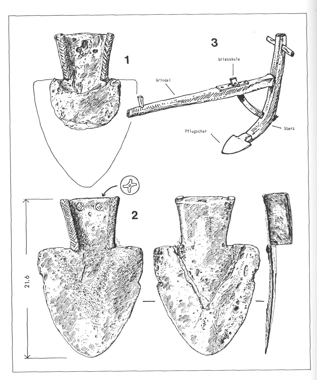Mittelalterliche (auch frühere) originale Schareisen zur Bearbeitung des Bodens aus einer privaten Heidesheimer Sammlung. |