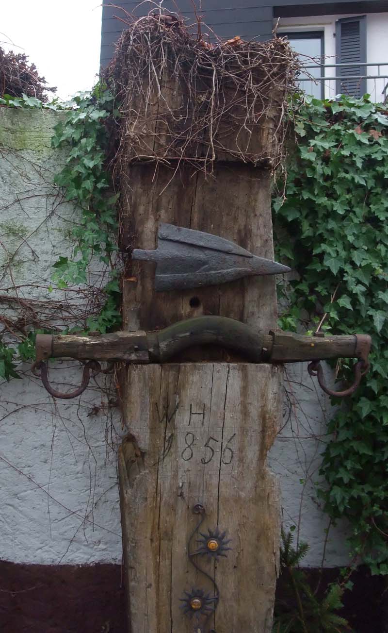Altes Schar als Dekorationselement an einem alten Kelterstamm im Oberdorf.