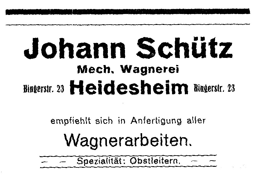 längst still gelegten Werkstatt Schütz in Heidesheim finden. |
