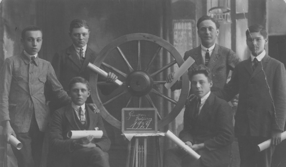 Appel (hintere Reihe rechts) nach der bestandenen Gesellenprüfung.