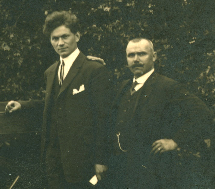 Wagnermeister Hans Appel mit seinem Vater und rechts seinem Sohn Herbert. |