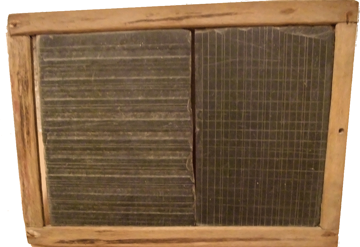 Eine Schiefertafel aus dem 19. Jahrhundert, die nach eigenem Bedürfnis und Vermögen den Anforderungen angepasst wurde. |