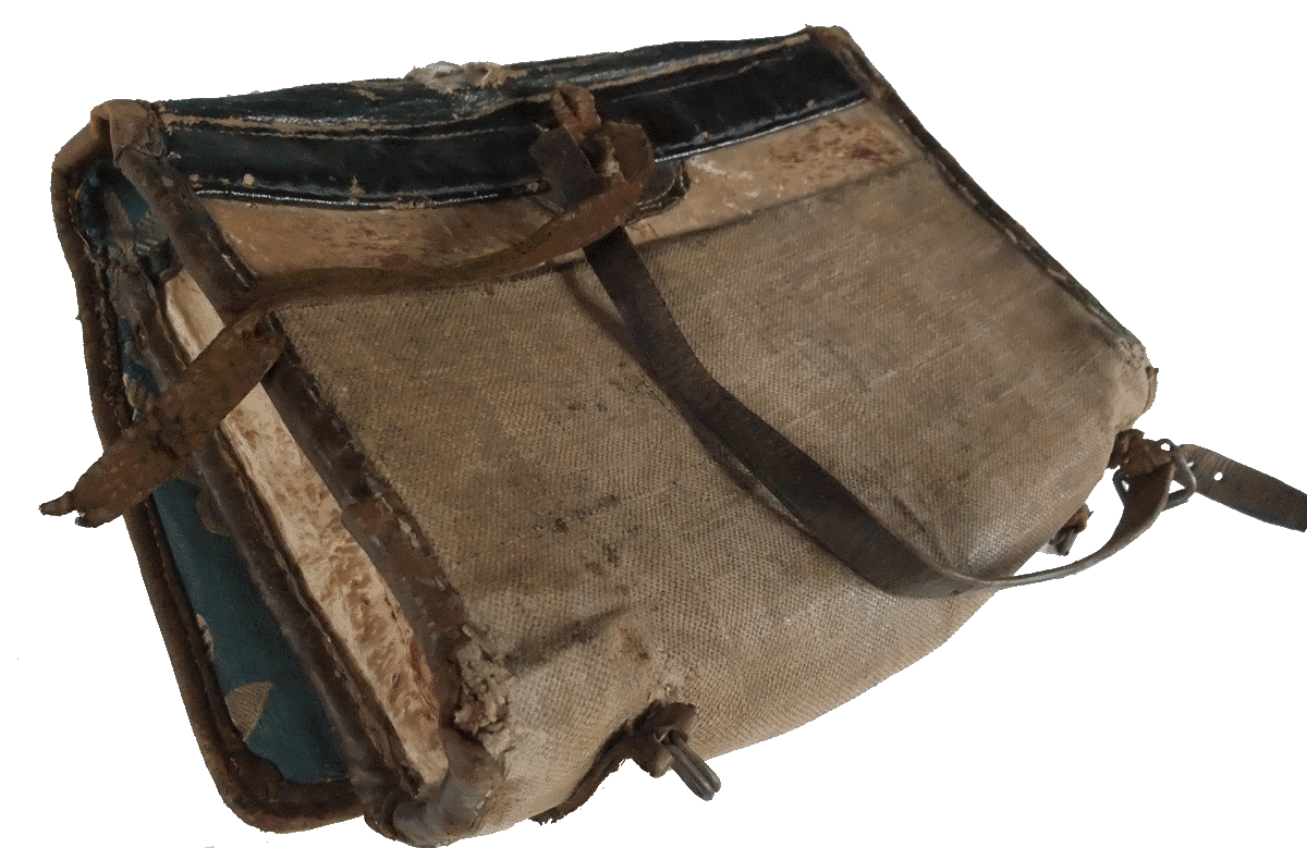 Teil der Ausstellung weist dieser Ranzen mit der eingeprägten