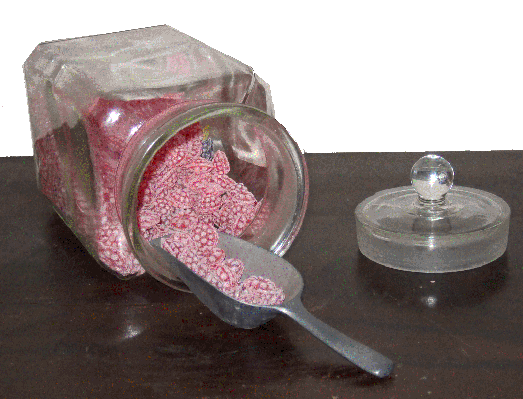 roten Himbeerbonbons neben den goldgelben Anisstäbchen, in