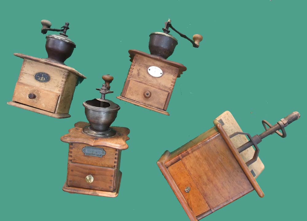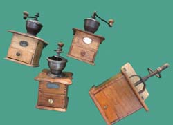 Butterformen waren auch Kaffeemühlen aus Holz, Blech, Gusseisen