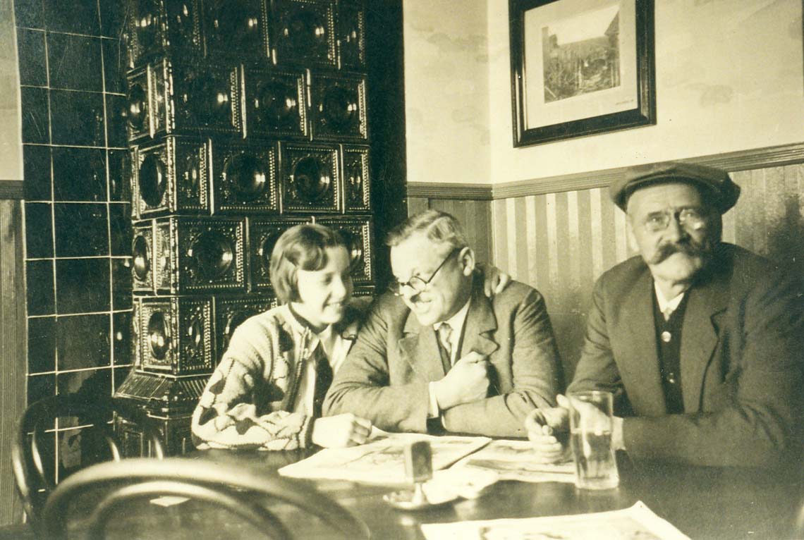 Gastwirt Karl Metzler mit Tochter Lena und Johann Adam Fuchs |