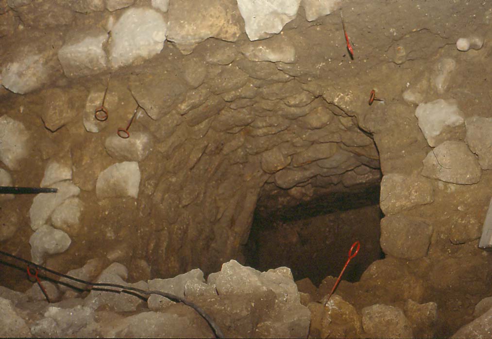 Römische Sandsteinquader in Zweitverwendung beim Ausbau der