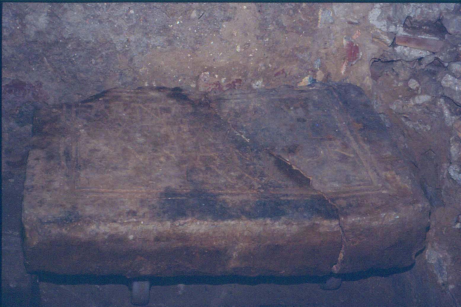 Grabanlage hin, in der die Platte eingelassen war, wie etwa der Grabbau