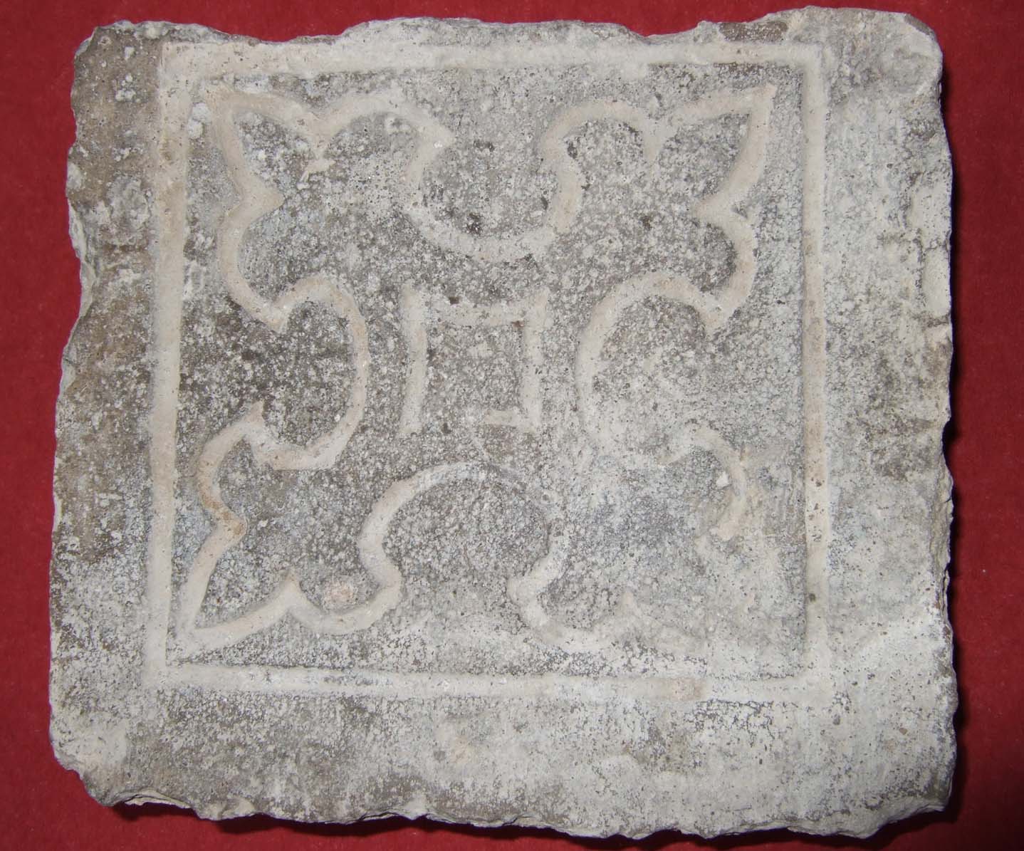 Tonerde über die Steinfläche geblasen/gestreut wurde,