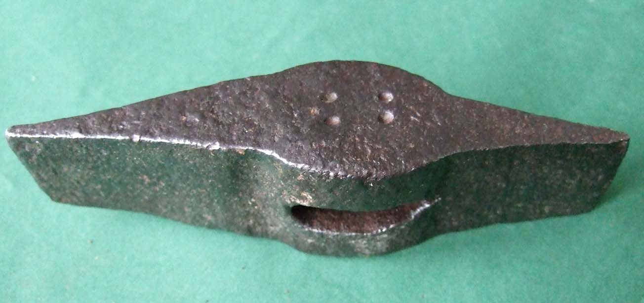 Amboss hergestellten kleinen Zweispitz ausgestellt. Die tiefen Rillen,