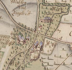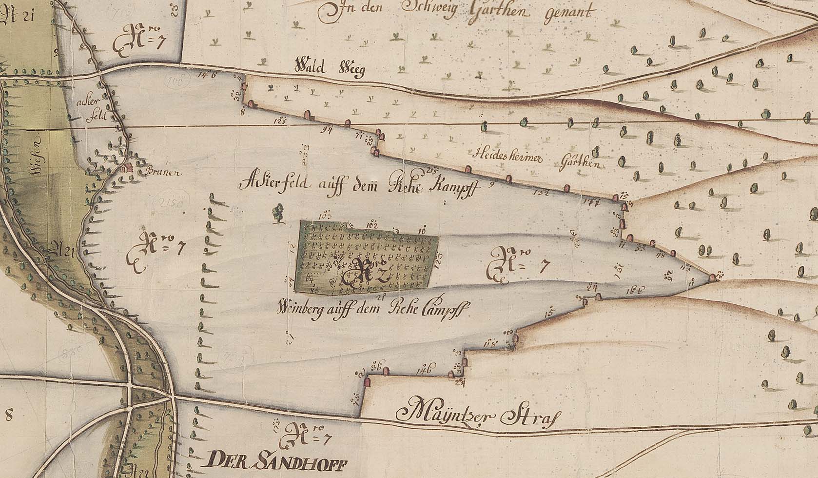 Rheingau. Der Sandhof, der noch 1754 in deutlicher Entfernung