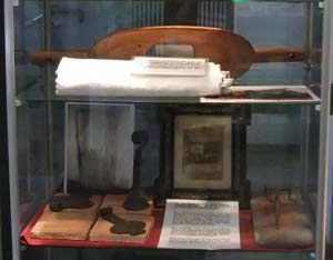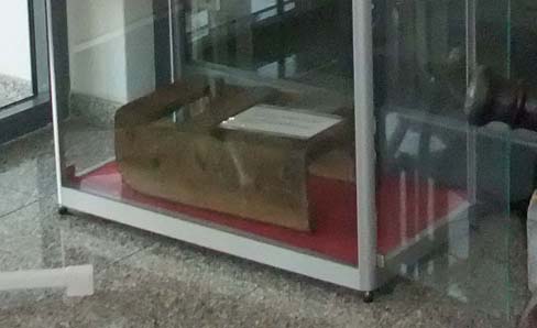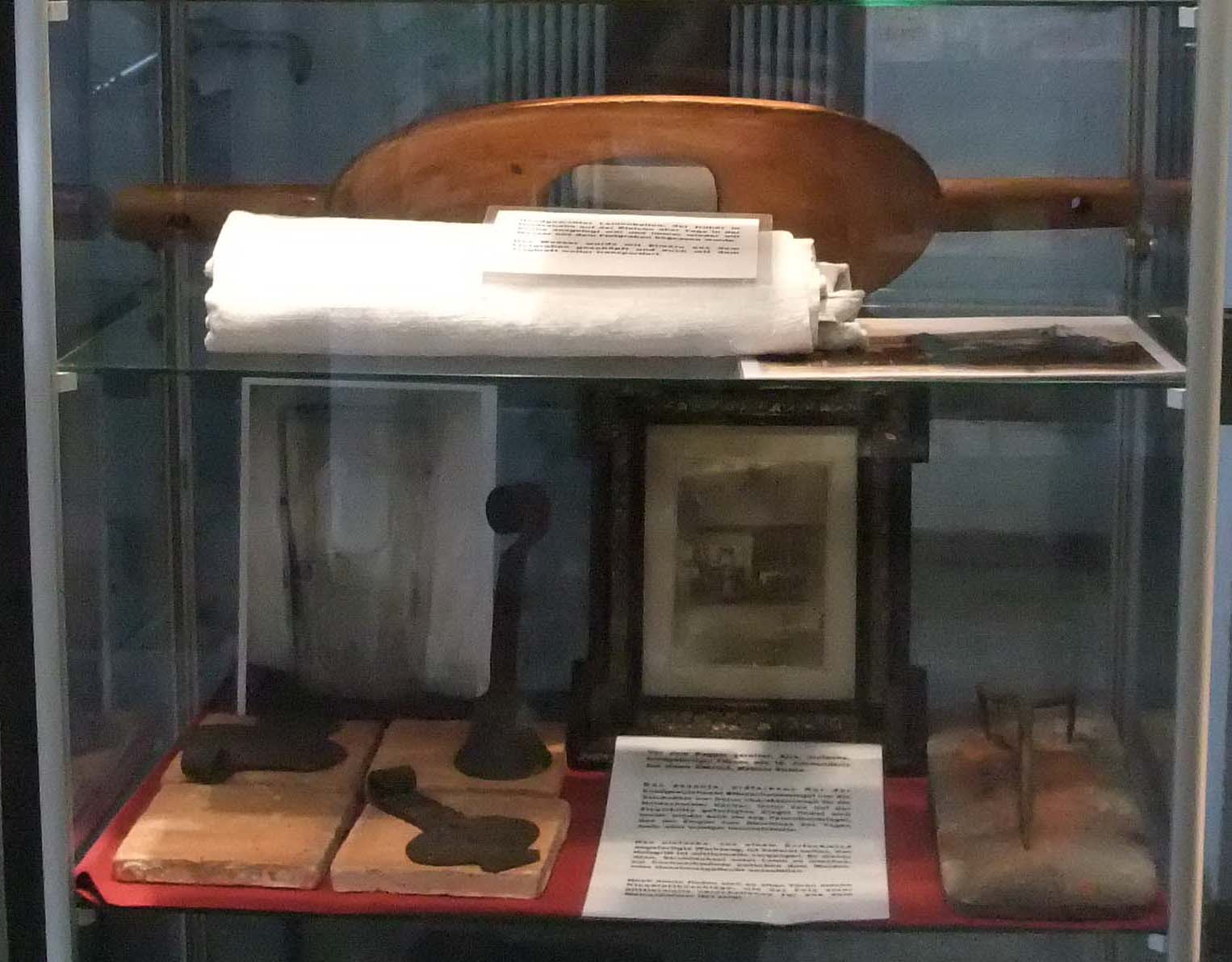 dem handgewebten Leinenballen in der Vitrine, der früher in