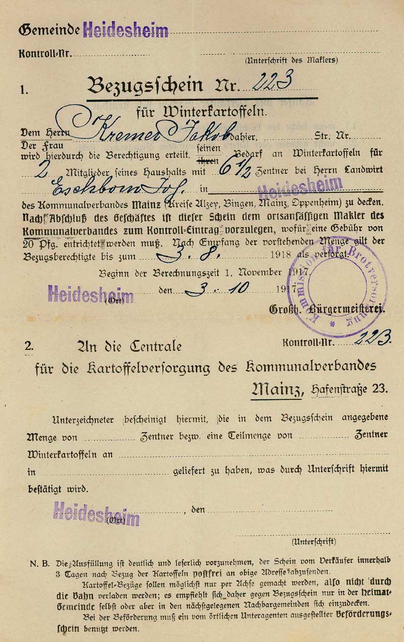 Kartoffeln zugeteilt.