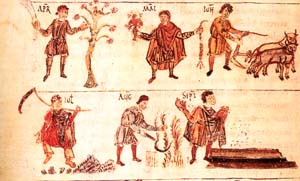 Darstellung landwirtschaftlicher Arbeit aus einem Kalendarium zeigt