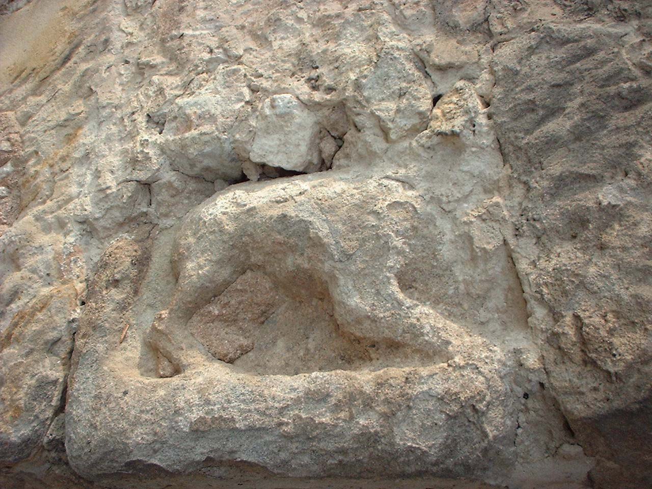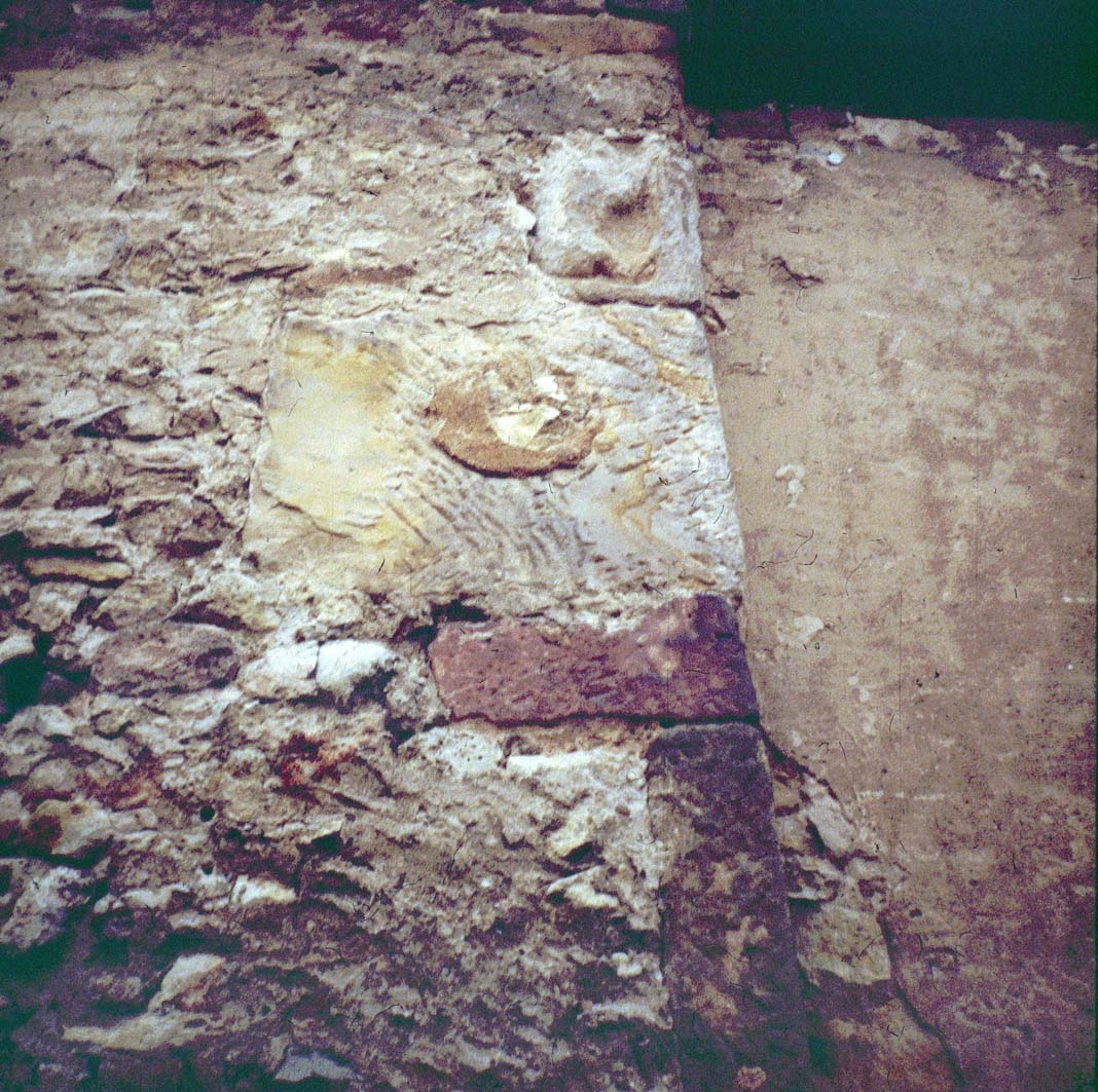 Steinquader aus heimischem Kalkstein mit dem Originalputz aus dem 3.
