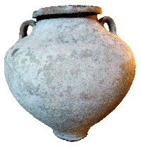 nahe der Römerstraße gefundener Honigtopf mit Resten