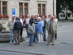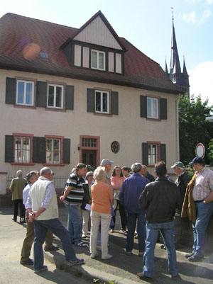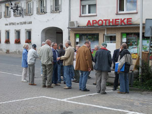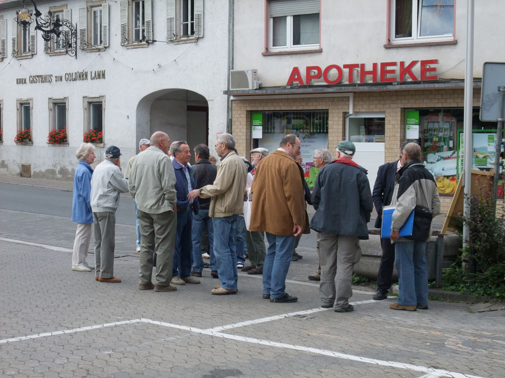 gehen vorbei an der Stelle, wo vor dem Rathaus die erste Heidesheimer