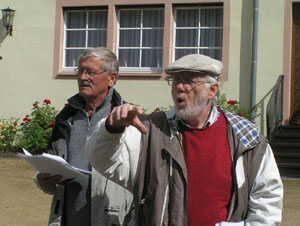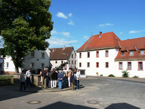 verraten, dass wir hier vor der Kirche im Zentrum des alten Heidesheim